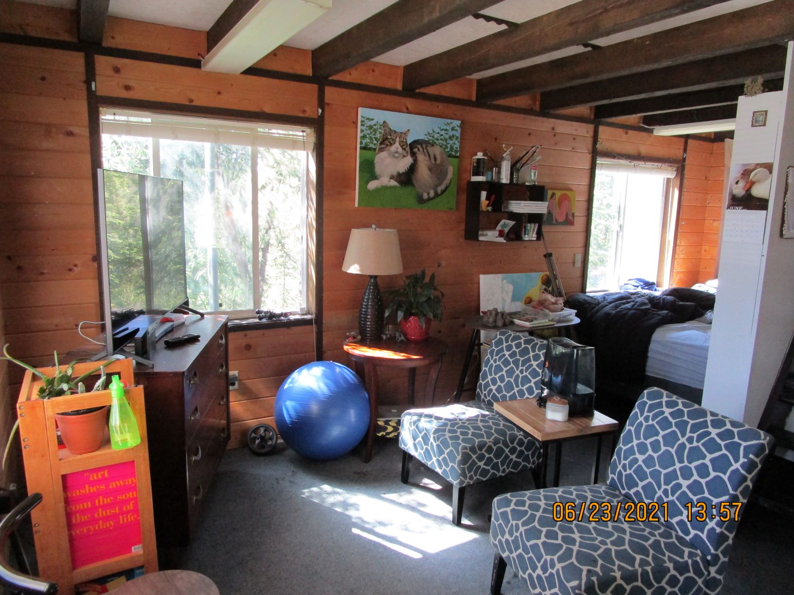 This cute Goldstream Valley cabin is close to UAF and in a wooded private location. New porches front & back, new carpet, DSL internet, SimpliSafe security system, Toyo heat, small water tank for kitchen, loft bedroom.
