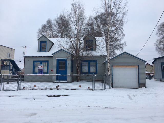 Cute older homer ready for renovation. Being sold as-is. Heating and water are functional (heat is on). Popular old historic Fairbanks area. Fenced back yard, attached garage (unheated), and arctic entry. Possible 4th bedroom upstairs.