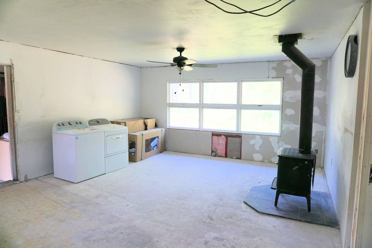This property is incomplete after remodeling was started earlier. There is a new Toyo in the garage, some of the garage walls have been reinsulated but not re-sheetrocked yet, new cabinets are present for the kitchen, refrigerator and range, and flooring is on site and passes with sale. Through the FNSB changeout program there is a new wood stove ($8,000) in the living area. The old boiler was removed and there is no central heating system currently.